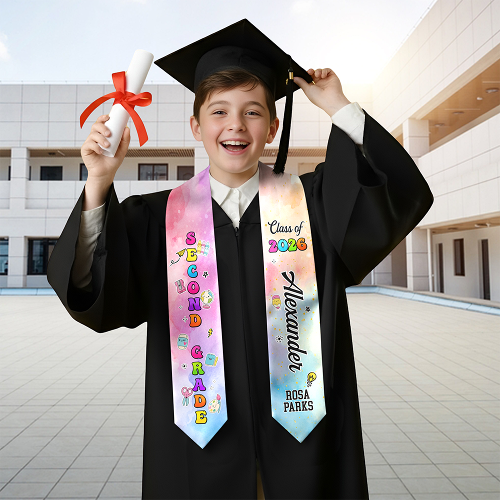 Celebrate your graduate's milestone with this elegant custom name Class of 2026 graduation stole. Crafted from premium silk, this 4" x 50" stole features personalized customization to make their special day unforgettable. The perfect keepsake gift for commemorating academic achievement and creating lasting memories. Ideal for graduation ceremonies, photo sessions, and cherished keepsakes. Each stole is individually crafted with care, making it a meaningful present that honors their accomplishment.
