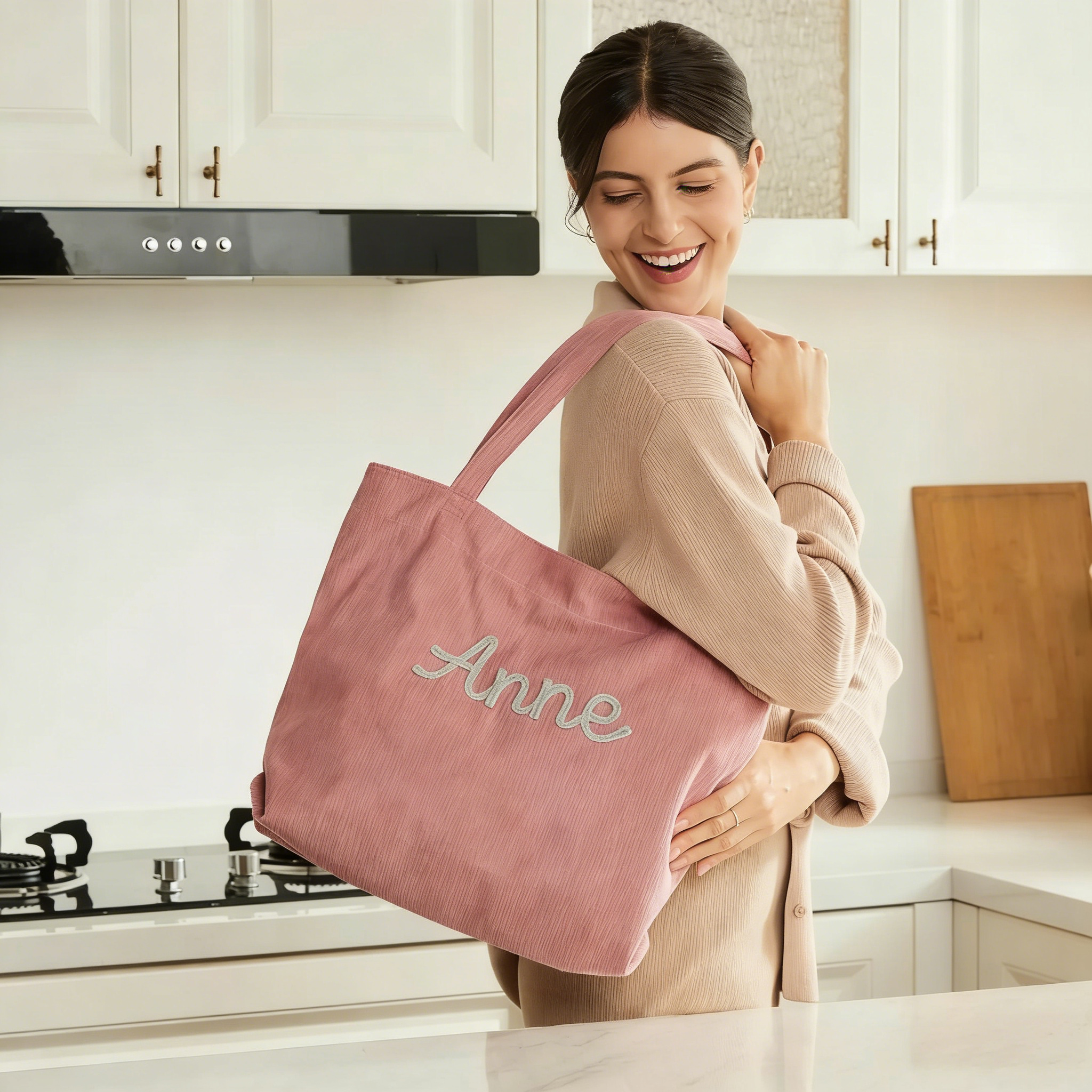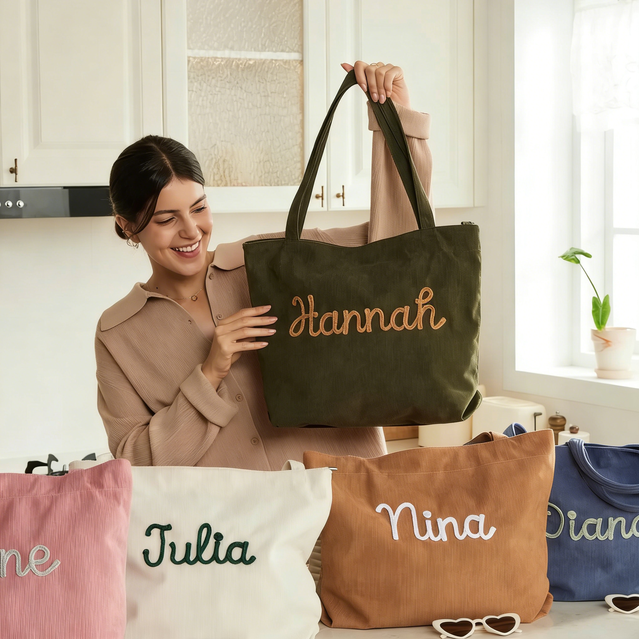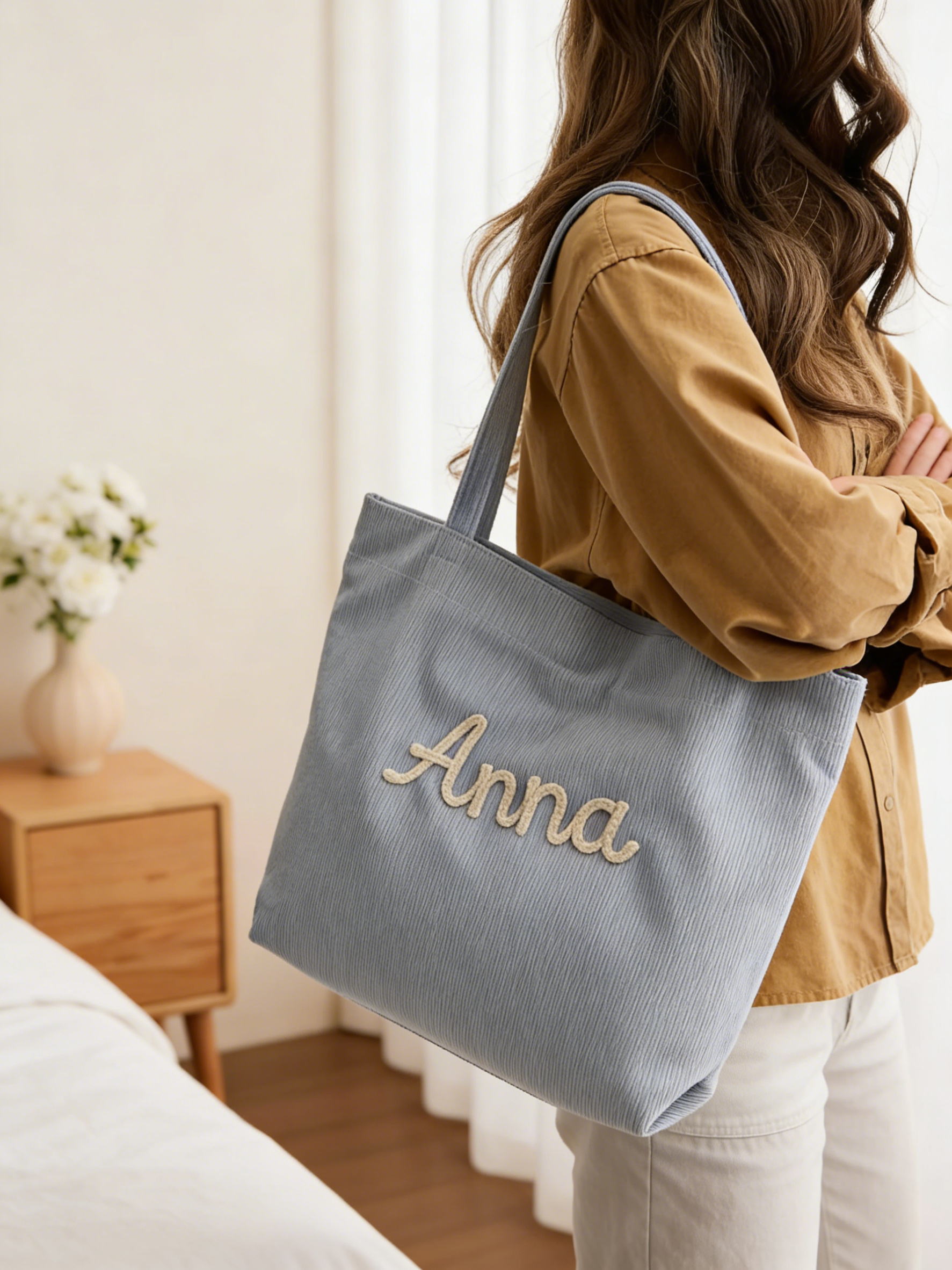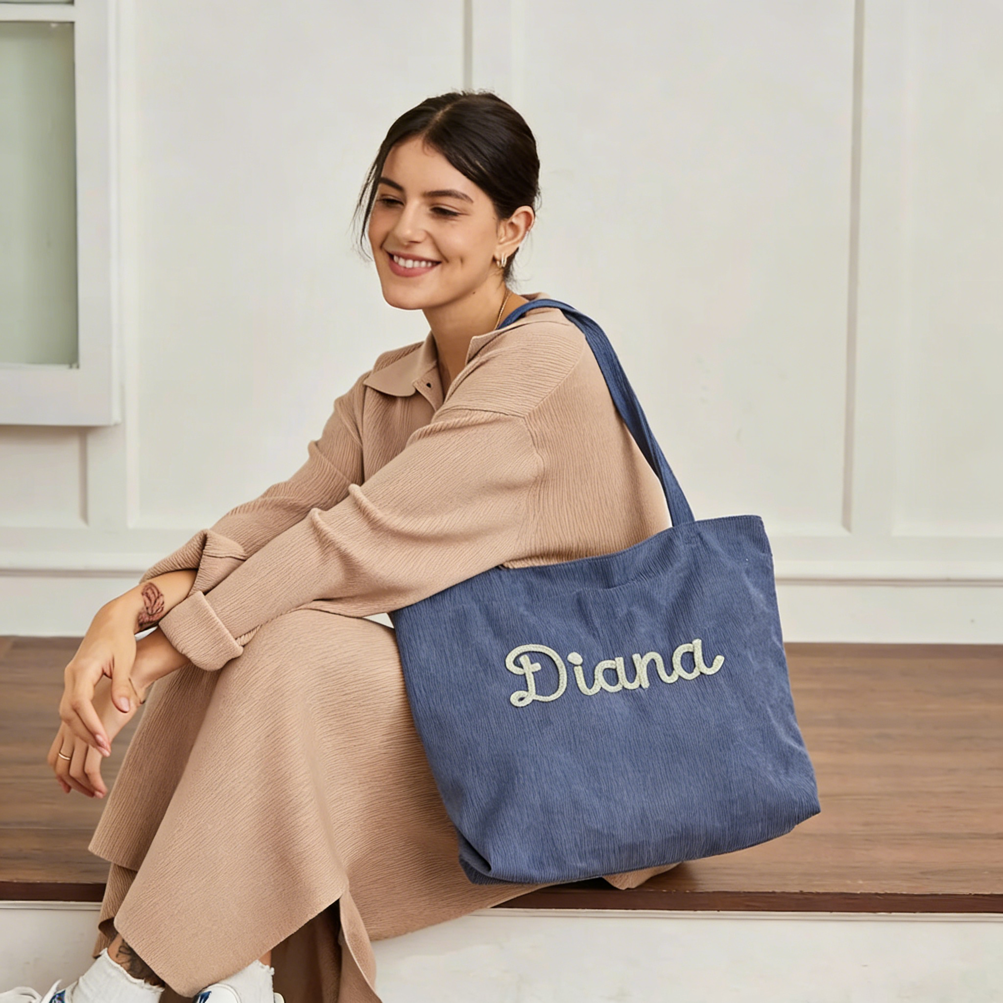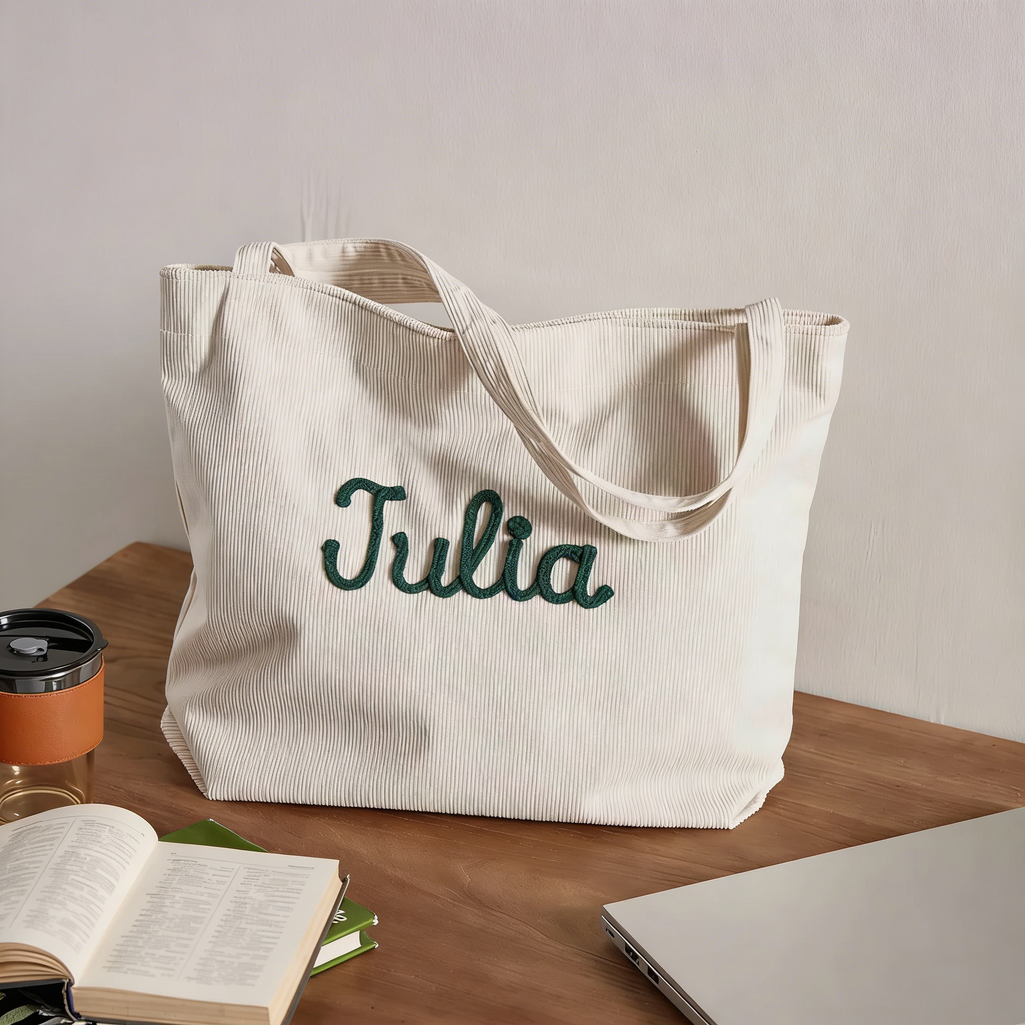 🎁 Custom Corduroy Tote Bag – Personalized Embroidered Gift for Every Occasion
