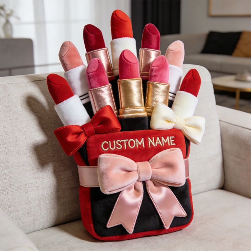 Where beauty meets sentiment in a huggable form. This uniquely designed Lipstick Bouquet Pillow artfully blends the chic allure of cosmetics with a heartfelt message of affection. Each meticulously crafted “lipstick” in the bouquet is a celebration of style and personal grace.