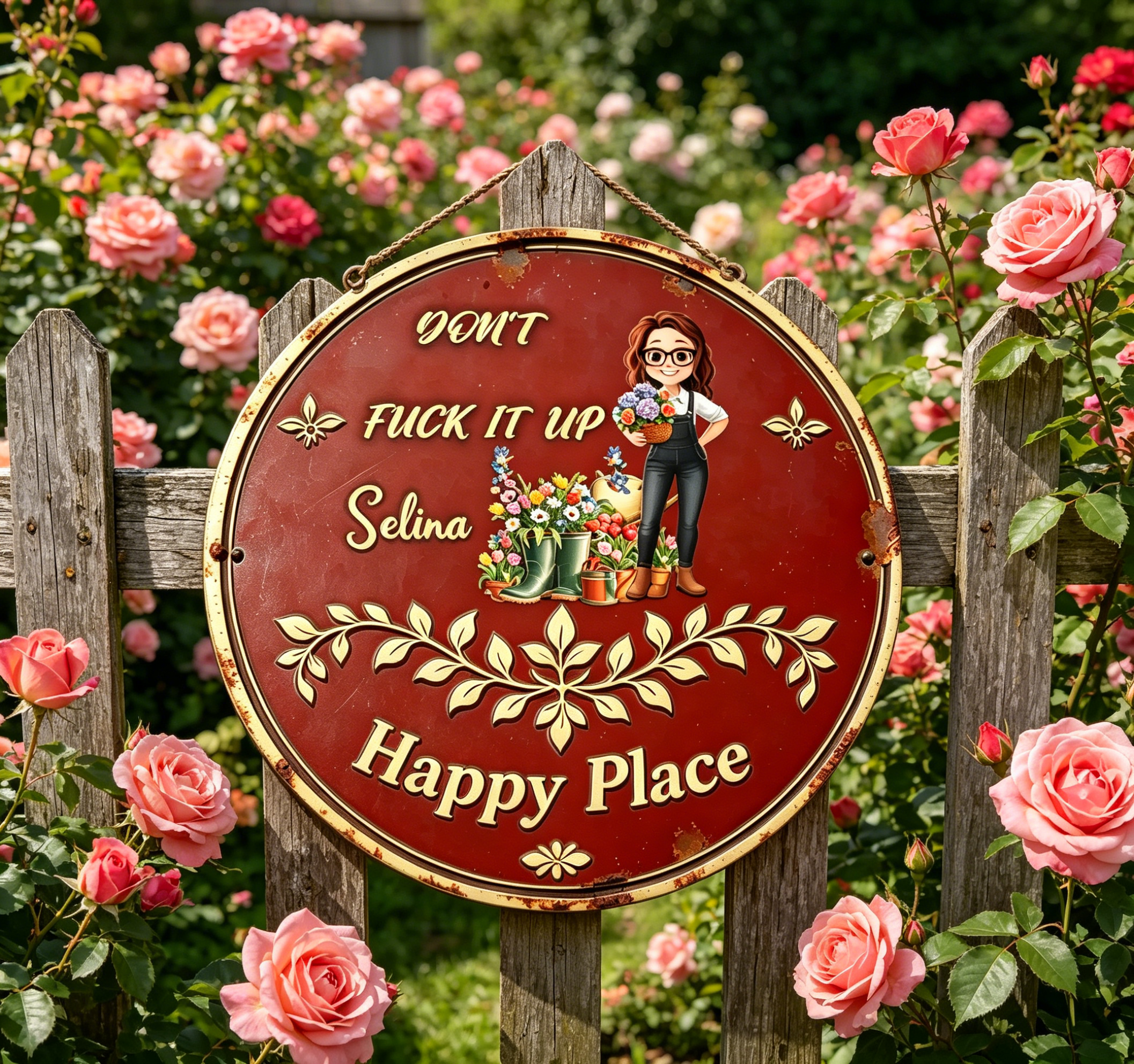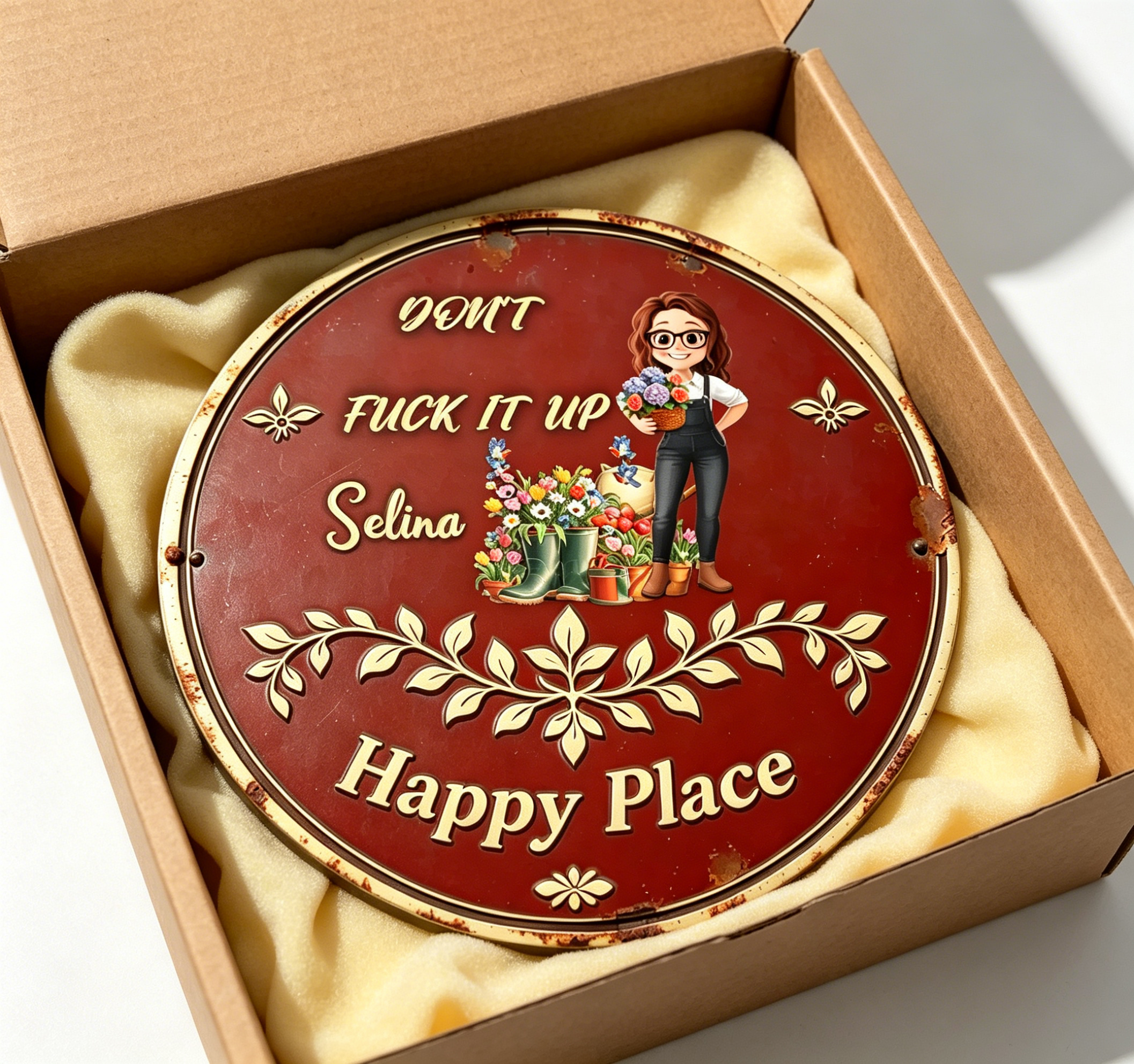 Welcome to My Happy Place – Metallschild — Individuelles Design, rustikale Wohnkultur, originelle Wohnakzente, Hof- & Gartendeko Ein Geschenk für Mama